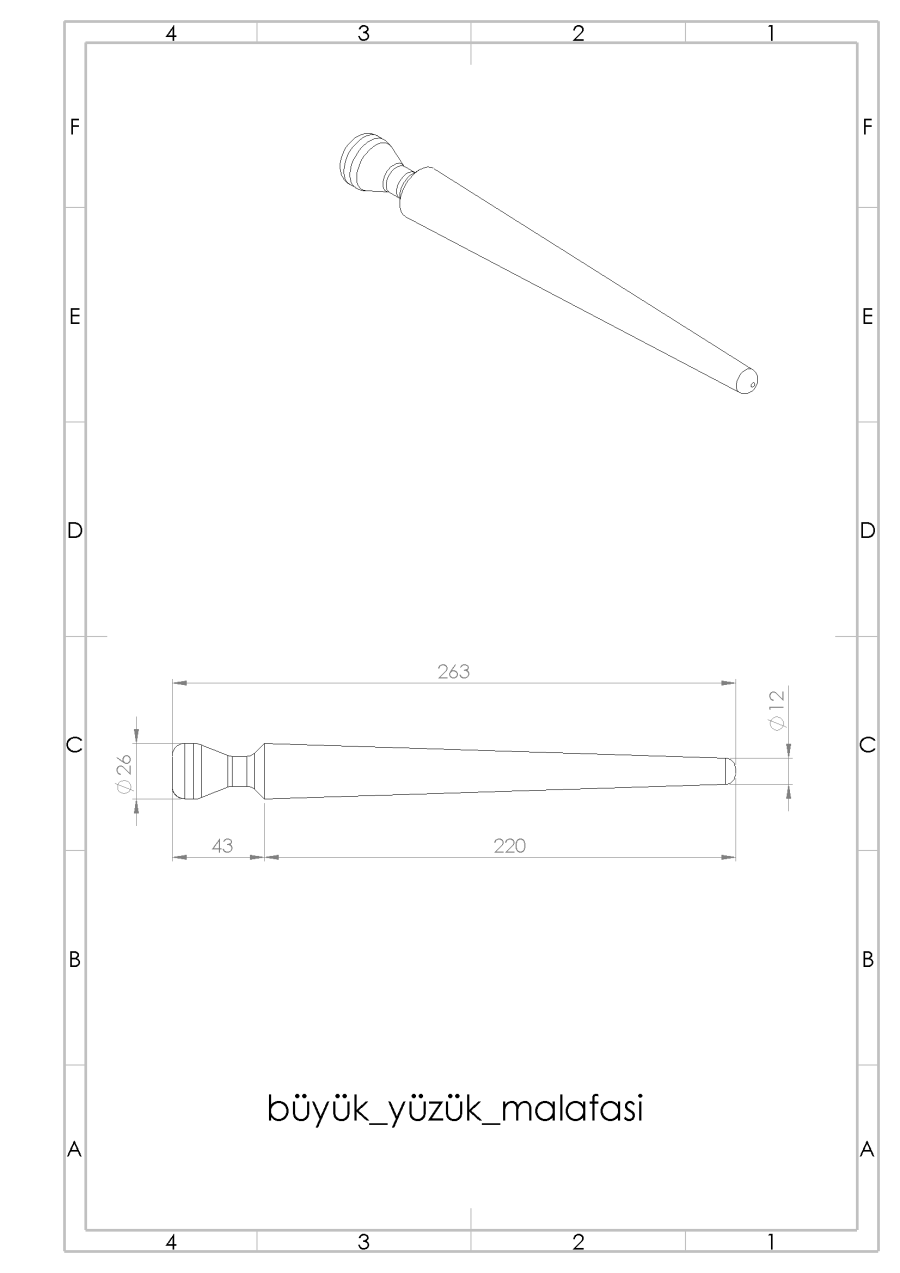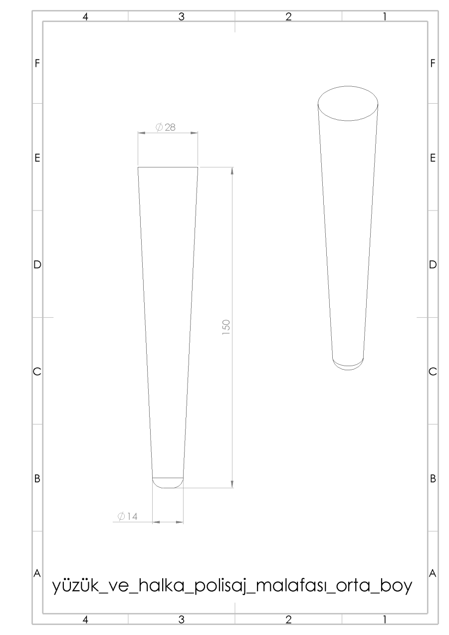 büyük çap 15 mm , küçük çap 8 mm , boy 140 mm dir.